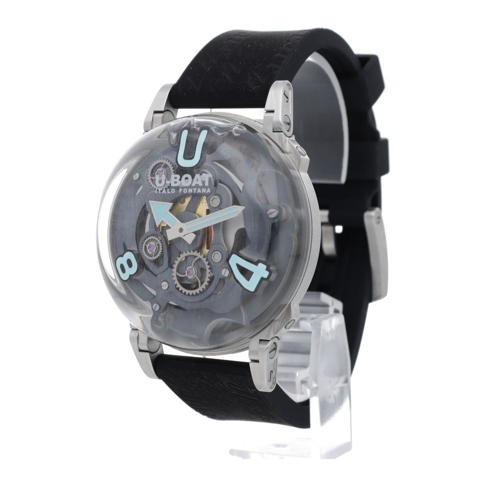 Eine wirklich seltene Luxusuhr. Limitiert auf 1001 Exemplare weckt sie die Begierde von Männern, die eine Extra-Dosis Adrenalin locker verkraften können. Auf Frauen wirkt sie nicht weniger anregend. Was hat sie, was die anderen U-BOAT-Uhren so nicht haben? Selbst Kenner können das mit Bestimmtheit nicht beantworten. Es ist ein Feeling, eine schwer greifbare Anziehungskraft. Kultig, viril, starke Wirkung in XXL. Mit ihr steht man an der geöffneten Flugzeugtür kurz vor dem Moment, in dem man nach vorne stürzt und in einem unglaublichen Begeisterungsrausch Schwerelosigkeit erlebt. Bis der Fallschirm sich öffnet. Der futuristische Touch lässt auch an Raumfahrtabenteuer denken, an Aliens, die aus fremden Galaxien auf der Erde landen. Trotzdem ist sie ein verlässlicher und ganz zeitgemäßer Freund für alle Lebenslagen.