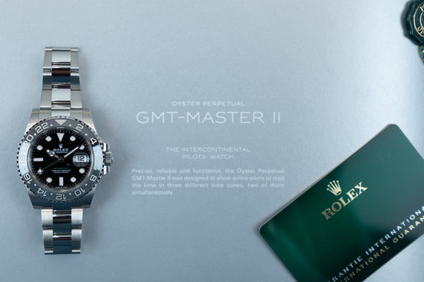 GMT-Master II- modellerna, som följer i fotspåren av den tidigare GMT-Master Reference 1675, gör sig ett namn med vänliga smeknamn som " Pepsi ", " Batman " eller "Sprite". De catchy smeknamnen kommer från färgerna på modellernas keramiska ramar. De reptåliga tvåfärgade Cerachrom-ramarna i blått och rött ("Pepsi"), klarblått (" Smurf "), grön-svart ("Sprite"), svart-blått ("Batman") och liknande extravaganta färger fungerar som ett effektivt blickfång ger klockorna ett visst igenkänningsvärde. Trots den slående färgen på ramen går den svarta urtavlan på GMT-Master II inte obemärkt förbi. Tvärtom: den keramiska ramen, urtavlan, visarna och indexen bildar en särskilt harmonisk helhet i denna modell och är extremt tilltalande för ögat. På en funktionell nivå har Rolex GMT-Master II-klockorna ett hoppdatum, en andra tidszon och en stoppsekundersfunktion. Dessa komplikationer möjliggörs av kaliber 3285 in-house rörelse.